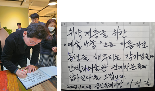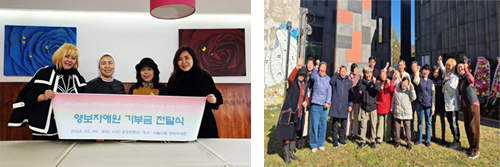 -작품 판매수익금을 <서울 시립 영보자애원>에 기부하다- 23년 12월에 예술가들의 아름다운 감성으로 빚은 작품을 판매한 수익금으로 장애우들에게 기부하는 뜻깊은 기회의 자선전은 그들과 함께 기쁨을 나누며 따스한 연말을 보내는 보람 있는 자리였습니다. 미술관은 유명한 작가의 작품을 조명하거나 연구하는 것도 중요하지만,<불우 이웃>에게 사랑과 관심을 가지고 격려하고 응원해 주는 역할 또한 <감성의 꽃>이 피어 있는 예술가들이 해야 할 몫이라고 생각합니다.