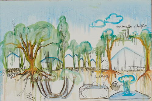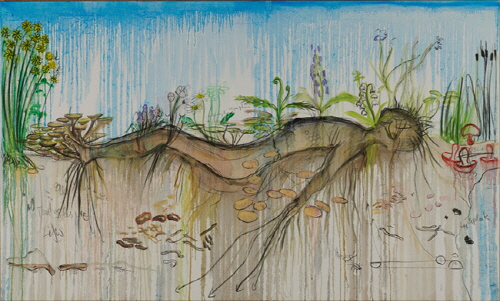 Think roots, 2024_oil and charcoal on canvas_100x150x2.5cm