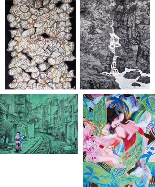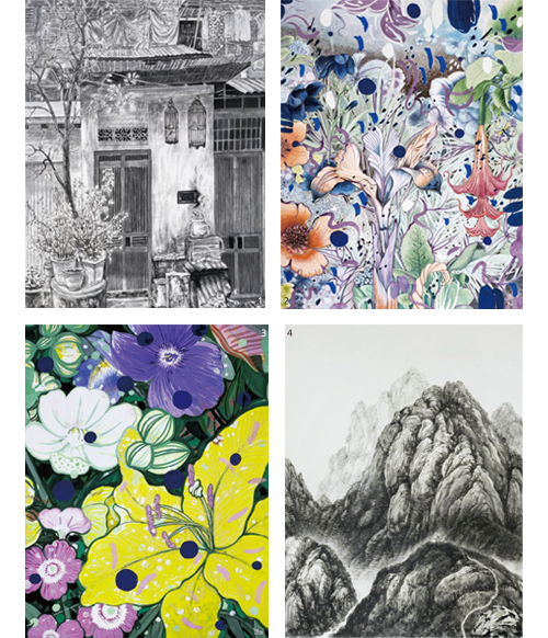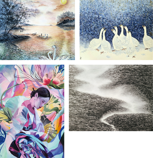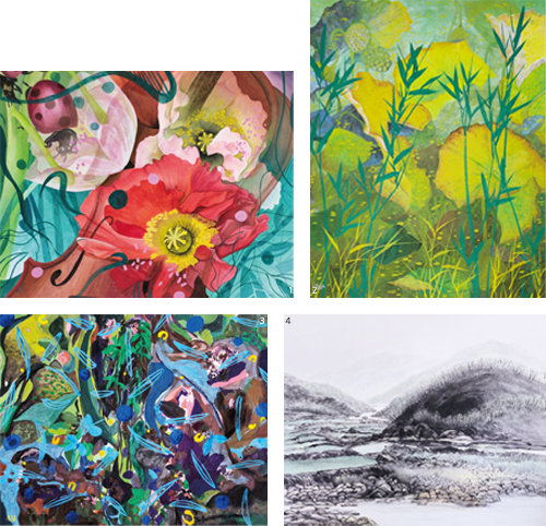 1 김민지 作_유희회로_50F_장지채색_2024 2 정희숙 作_내안의 풍경_30F_장지채색_2024 3 김윤영 作_생동하는 몸짓_30F_장지채색_2024 4 장영미 作_산너머 남촌의 봄_30F_장지수묵담채_2024