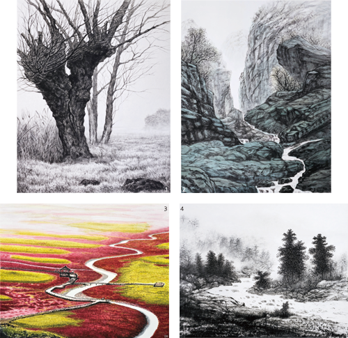1 길선미 作_낙조단상_50F_장지채색_2024 2 김소영 作_어느 이른 봄날에_50F_장지수묵_2024 3 김은경 作_생동_50F_장지채색_2024 4 박태성 作_대춘(待春)_50F_장지수묵담채_2024