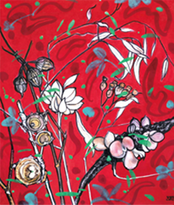 1 김윤식 作_적조(寂照)_50F_장지채색_2021 2 강진숙 作_용트림_50F_장지수묵_2024 3 이순자 作_하얀 겨울안개_50F_장지수묵채색_2024 4 류백란 作_화.화.화(花)_50P_장지채색_2019