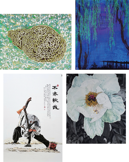 1 이현구 作_생성 그리고 순환_100F_장지채색_2024 2 길미재 作_봄밤의 정취_50F_장지채색_2024 3 민순자 作_불역쾌재(不亦快哉)_20F_아사천에 수묵_2024 4 서지희 作_청초한 자태_20F_장지채색_2024