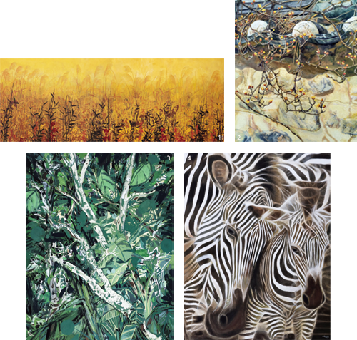 1 구란희 作_가을의 연정_194x130.3cm_장지콩땜채색_2024 2 공정애 作_움트는 봄_10F_장지채색_2022 3 신현주 作_숲의 야상곡_50F_장지채색_2024 4 신명숙 作_달콤한 일상2_50F_장지채색_2024