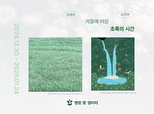 새롭게 시작되는 시간과 함께 병원 安 갤러리에서는 초록의 문이 활짝 열린다. 추운 겨울 잠시 멈춰 초록의 시간을 들여다보자. 초록은 자연의 생명력이 넘치는 시기로 우리에게 활력과 에너지를 주며 마음을 편안하게 해 준다. 김재현, 김지연 작가의 <겨울에 머문 초록의 시간>은 자연의 아름다움과 생기를 부여하는 시간으로 일상의 근심, 걱정을 내려놓고 휴식을 취할 수 있는 초록빛 가득한 세상에 여러분을 초대한다.