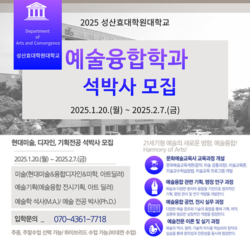 2025학년도 성산효대학원대학교 예술융합학과 전기 석·박사과정 신입생 모집