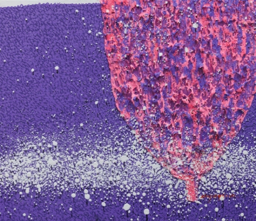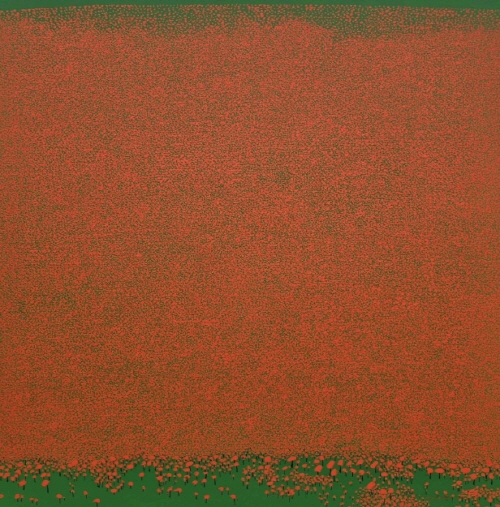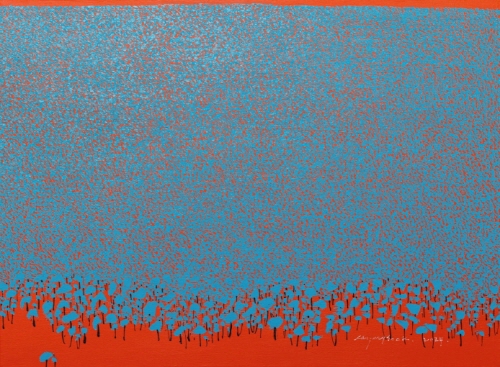 모든 요소를 배제하고 오로지 색(면)에 의해서 기본적인 인간의 감정을 전달하고 명상과 사유로 인도하는 작품을 구사하던 대표적인 작가들 가운데에는 1950년대 미국의 색면추상회화(colorfield painting) 작가들이 있다. 그 가운데 대표적인 작가로 꼽을 수 있는 마크 로스코(Mark Rothko)는 “색상은 표현의 언어이며 심리적, 종교적 경험으로서, 보는 이가 울음을 터뜨릴 수 있게 만들어준다”라고 했다. 이처럼 회화에 있어서 색채는 상징적 언어이자 정서적 흡인력(吸引力)이 강한 도구인 것이다. 먼 산을 배경으로 숲과 나무가 전경을 장식하고 그 배경에 하늘이 상부의 화면을 차지하고 있는 작가의 캔버스를 멀리서 바라보면 몇 개의 색면으로 이루어진 단순한 화면이 읽힌다. 그리고 다시 화면에 한 발 더 다가가면 그 안에는 작가가 원색의 변주를 통해 조색(調色)해낸 색면을 배경으로 수많은 색의 파편이 공명하는 색상의 장이 펼쳐진다. 앞줄에 선 간략한 나무 형상들이 조금씩 크기를 줄이며 색점이 되어 뒤로 물러서는 형태 원근법적 표현을 제외하면 간략한 점묘법 형식으로 숲의 이미지를 형성하고 있는 대형 화면은 붓놀림이 힘차면서도 대담하다.