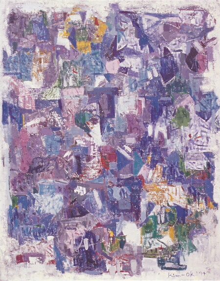 물이 오를 대로 오른 자연은 생명의 생장점을 자극하여 또 다른 생명이 톡하고 터져 나오는 싱그러움으로 꿈틀댄다. 저 깊숙한 곳에서부터 올라오는 환호성 같은 것, 범접할 수 없는 영혼의 자유로움과 불사름, 상상과 진실의 조화로움이 가져오는 색상의 조화, 이런 점에서 김규옥의 그림은 찬사를 받고 김규옥이라는 이름이 남는다.