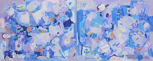 김규옥 그림의 주조색은 블루이다. 여러 색의 혼합된 색에서 어쩌면 이렇게 신비로운 색이 나올까, 잠시 블루의 매혹 속으로 빠져든다. 블루는 밝고 경쾌하면서도 가볍지 않는, 차분하면서도 너무 깊게 가라앉거나 들뜨지 않는, 흔들리지 않는 정제된 느낌을 준다. 이 그림 앞에서 나는 성모마리아 앞의 따뜻함과 거룩함을 느낀다.