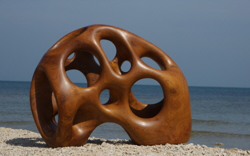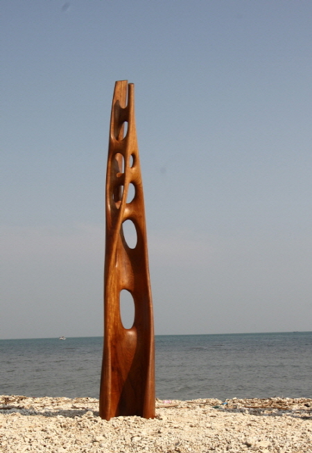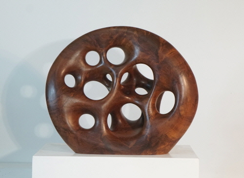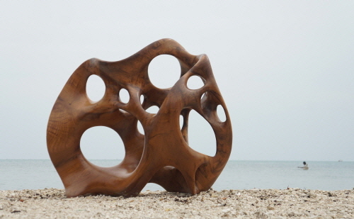 나의 작업은 나무에 대한 사유(思惟)이다. 인도네시아 고산의 밀림에서, 수명을 다한 오랜 세월 형성된 재질과의 만남이고, 손질한 흔적이다. 나무를 깎고 다듬는 것은 나무마다 지닌 형태와 특성을 존중하여 더욱 나무다운 아름다움 자체로 부활시키는 일이다. 나무마다 살아온 이야기를 보여주는 나이테와 만져지는 촉각으로 실체를 느낄 수 있게 표면을 곱게 다듬었다 나무의 실체를 드러내는데 걸림들이 될만한 자연계에 있는 유기적인 형태의 의미나 이미지와 무관한 탈(脫) 이미지 조형적 작업이다.