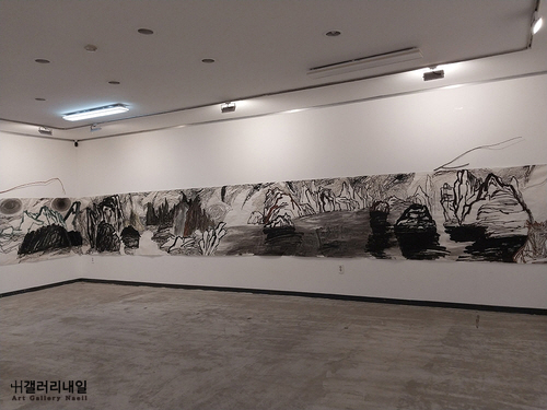 움직이는 산수_120x1000m_한지 위 먹_2024