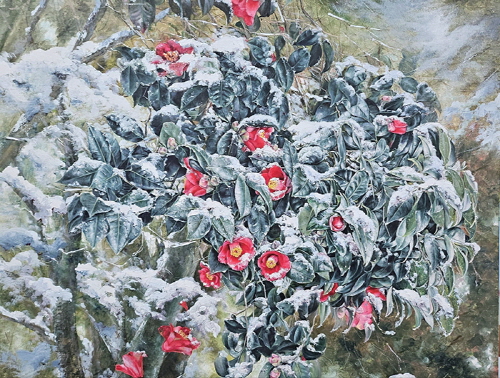 이현주 作_하얀 숨결 속에 핀 동백_72.7x90.9cm_Oil on canvas