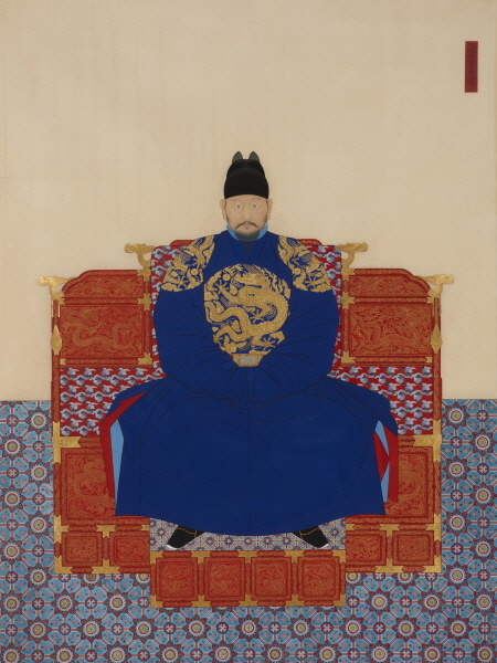 이경덕 作_영조대왕 어진_80x128cm_견본채색_2024 보물 제932호_조선 제 21대 국왕_국립고궁박물관 소장본 모정이 높은 익선관에 용보가 달린 홍룡포와 옥대착용한 복원모사작