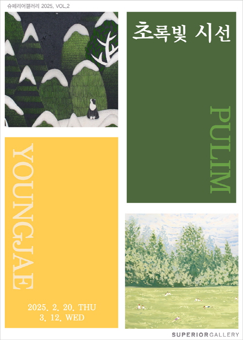 《초록빛 시선》 展 는 우리가 보는 것과 보이는 것에 대한 의미를 다시 돌아보게 하며, 삶 속에서 선명하게 기억된 순간과 쉽게 지나쳐버린 희미한 순간들 사이에서, 가치를 발견하고 무엇을 소중히 간직해야 할지를 고민하도록 이끄는 전시입니다. 이러한 기억들을 재구성하여 상상을 현실로 재현하는 《초록빛 시선》 展 을 슈페리어갤러리에서 선보입니다.