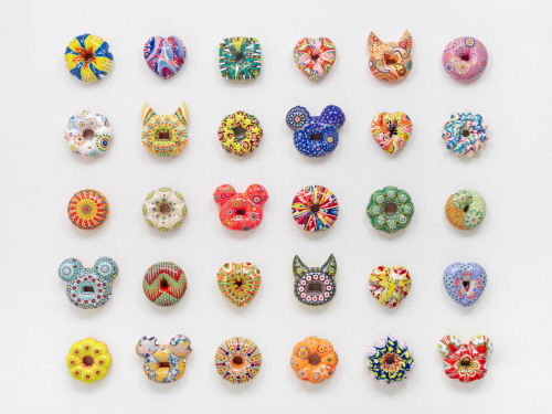 도넛 페인팅 시리즈 2022-2025_도자, 섬유강화플라스틱, 우레탄 물감, 아크릴릭 물감, 레진, 크리스털_190x232x13cm