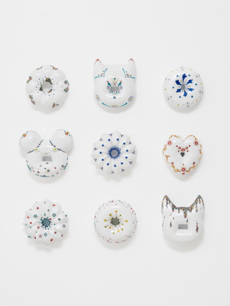 벌거벗은 도넛 Donut be Naked 2018-2022_Ceramics, under glaze, glaze, crystals_40x13x12cm