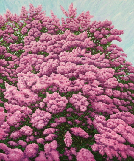 나는 창작의 세계를 깊이 사랑한다. 아무것도 없는 하얀 캔버스 위에 새로운 형상이 그려지는 순간, 그것이 생명력을 얻어 꿈틀거리는 듯한 감각을 느끼기 때문이다. 따스한 오월의 공원을 거닐다 문득 이팝나무를 마주했다. 풍성하게 핀 하얀 꽃들이 마치 눈이 소복이 쌓인 크리스마스트리를 떠올리게 했다. ‘이팝’이라는 이름이 쌀밥에서 유래했다는 사실을 떠올리자, 꽃잎들이 더욱 정겹게 다가왔고, 바라볼수록 마음이 설레며 기분이 들떴다. 작업실에 돌아오자마자 나이프로 물감을 쌓아 올려 마티에르를 만들었고, 우연히 둥글고 작은 밥알 같은 텍스처가 탄생했다. 그 순간, 내 안에서 이팝나무가 만개한 ‘치유의 섬’이 완성되었다. 골목길을 걷다 문득 익숙한 향기가 스치며 잊고 있던 기억을 조용히 흔든다. 옅은 보랏빛 라일락. 그 은은한 향기는 잊혀졌던 추억을 천천히 불러내고, 산책길에서 자연스럽게 그 향이 퍼지는 방향으로 발걸음을 이끈다. 나는 두 손으로 향기를 감싸 안 듯 깊이 들이마시며, 그 순간을 온전히 느낀다.