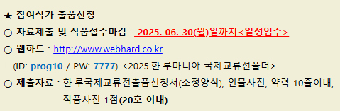 ※ 웹하드에서 출품 신청서 다운 받으실 수 있습니다.