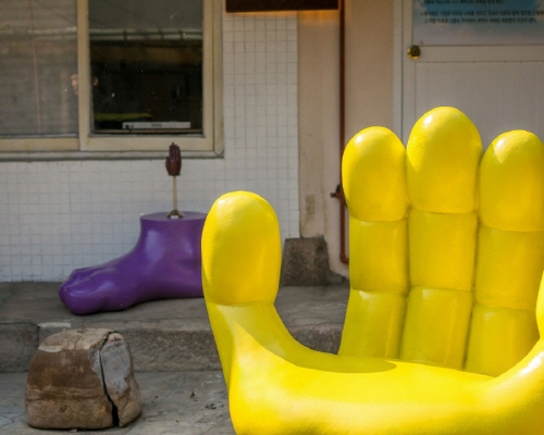 신혜정 作_엄지손가락이 2개인 손_1100x1200x800cm_스티로폼에 우레아, 수성페인트_2024