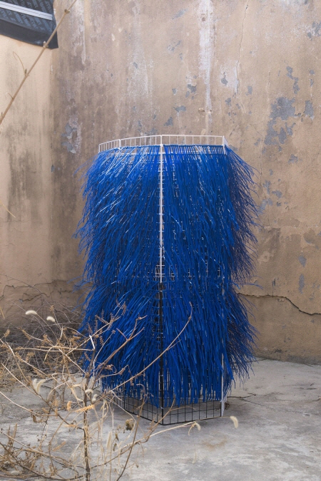 민소킴 作_Furry Blue_네트망, 케이블 타이_125x52x57cm_2024