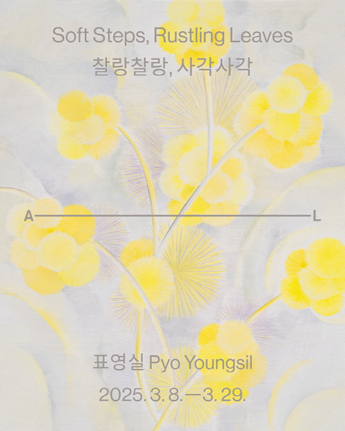 에이라운지는 2025년 3월 8일부터 3월 29일까지 표영실의 개인전 《찰랑찰랑, 사각사각》을 선보인다. 전시작은 총 21점으로 드로잉과 수채·유채 작업으로 구성된다. 2023년 갤러리 담에서의 전시 이후 2년 만에 열리는 개인전이다. 이번 전시명을 포함하여 그의 작품명에는 형용사와 의성 의태어가 자주 사용된다. 대체로 작가가 작업을 진행할 때 중심이 되었던 정서로, 이를 기준으로 파생된 이미지와 기억들이 그려진다. 《찰랑찰랑, 사각사각》전시에서는 작가가 천착해 온 내면의 섬세한 감성을 풀어낸 작업들과 함께 새로이 변화한 화풍의 작업을 선보일 예정이다. 작가의 말에 따르면 찰랑찰랑, 사각사각은 “바람이 불고 나뭇잎이 흔들리고 겨울의 건조한 공기 속을 산책”할 때 들리는 소리로, 작가가 그의 섬세한 감정의 변화와 강박증을 가볍게 다뤄보고자 하는 노력을 비유한다. 새로운 세계를 접하고 변화와 성장을 거친 그의 내면의 이야기가 캔버스 위에 실제 풍경과 어떻게 결합하였는지 이번 전시를 통해 살펴볼 수 있다.