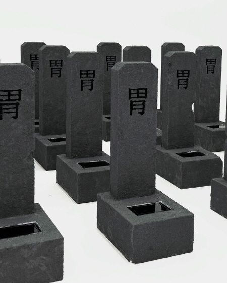 이 전시는 신체를 데이터화하는 현대적 강박과, 그 과정에서 소모되는 몸을 기록하는 작업이다. 위를 기리는 비석 그 아래, 작은 모니터 속 숫자들은 끊임없이 변한다. 마치 체중계의 숫자들처럼 정확한 값을 찾을 수 없는 이 숫자들은, 결국 우리가 쫓아온 이상적인 몸의 허상을 드러낸다.