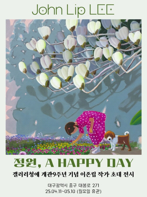 안녕하세요. 갤러리청애는 개관9주년을 맞이하여 이존립작가의 초대전시를 준비하였습니다. 그의 작품에서는 정원에서 행복한 하루를 보내는 사람들의 모습을 볼 수 있습니다. 사람들은 식물과 꽃을 돌보는 과정에서 삶의 리듬을 느끼고, 그 안에서 성장과 변화를 체험합니다. 그렇기에 정원은 우리들에게 있어 단순한 공간을 넘어 마음의 안식처이자 자연과의 연결 고리로서 중요한 의미를 지닙니다. 우리는 정원을 통해 자연의 아름다움을 가까이에서 경험할 수 있고, 일상에서 벗어나 나만의 시간을 보내며 내면의 평화를 찾기도 합니다. 이렇듯 정원은 우리에게 치유와 성찰의 공간이 됩니다. 이존립작가는 각기 다른 녹색의 뉘앙스를 통해 정원을 묘사하고, 자연의 풍요로움과 평온함을 캔버스 위에 담아냅니다. 잎과 꽃을 부드럽게 담아낸 붓의 기운은 서로 교차하여 숨쉬는 듯한 생명감을 보는 이에게 전달합니다. 이번 전시가 바쁜 우리들 마음 속에 정원같은 휴식이 되기를 바랍니다. 감사합니다.