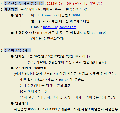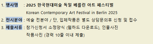 * 전시메일에 등록된 모든 이미지와 글은 작가와 필자에게 저작권이 있습니다. * vol.20250510-2025 한국현대미술 독일 베를린 아트 페스티벌 |