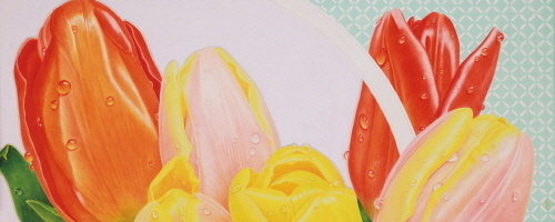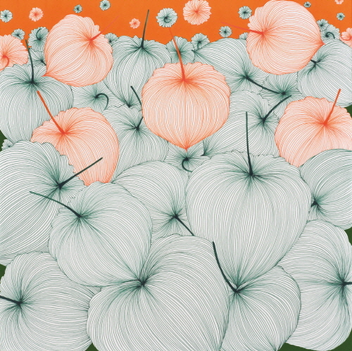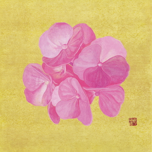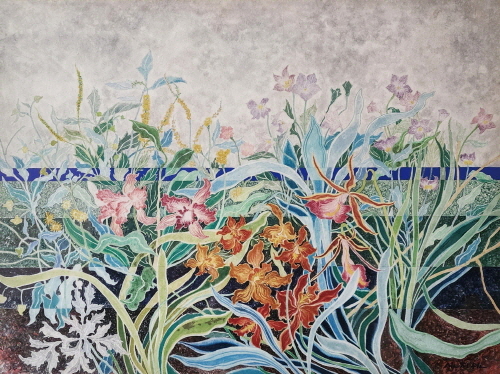 오정미 作_화훼본색- The magic 2501_장지에 분채,금펄_65x160cm_2025
