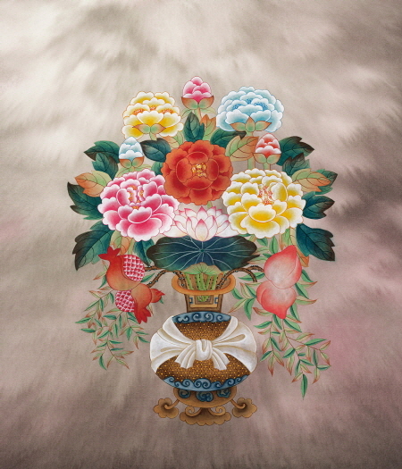 장은영 作_화병도_57x47cm_옻지에 수간 분채, 봉채_2025
