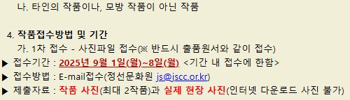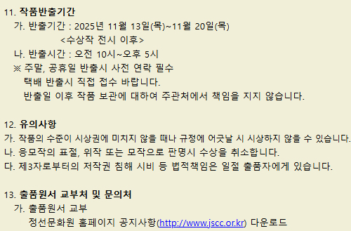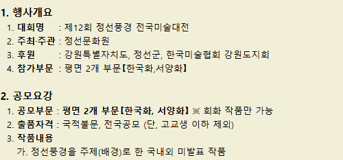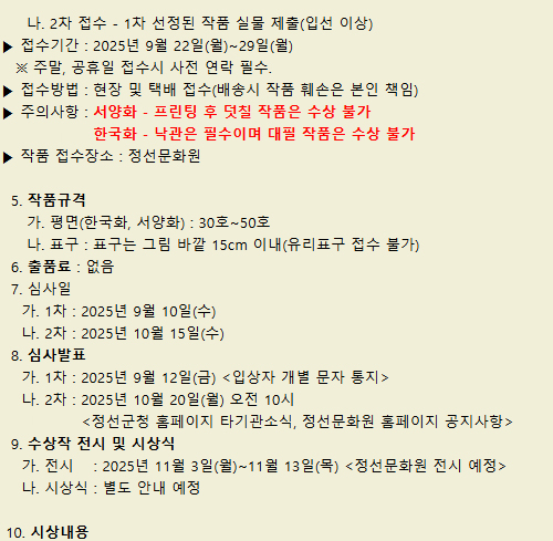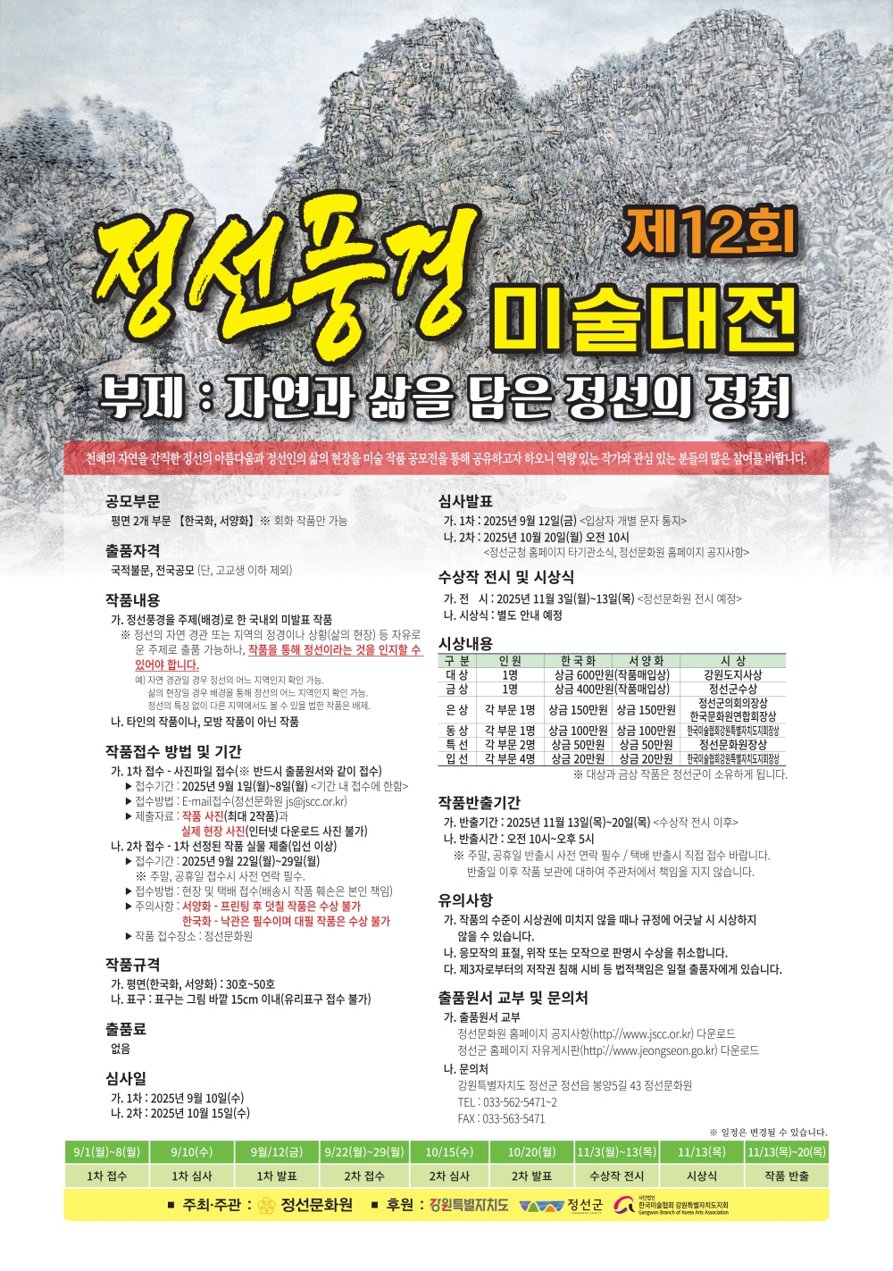 * 전시메일에 등록된 모든 이미지와 글은 작가와 필자에게 저작권이 있습니다. * vol.20250901-제12회 정선풍경 전국미술대전 |