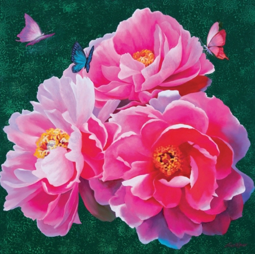 이석자 선생은 팔순(八旬)이 훌쩍 넘은 원로화가이다. 모란 전문 화가로 노익장을 자랑하며 누구보다도 예술에 대한 열정이 왕성한 화가다. 교육자로 은퇴를 하고 쉴 법도 한데 그림으로 제2의 인생을 활짝 열고 있는 그는 꽉 짜인 전시 스케줄을 맞추느라 오늘도 동분서주, 그 마음은 대학을 졸업하며 인생 첫 전시회를 준비하는 학도처럼 온통 그림에 마음이 쏠려 있다. 이석자 선생은 필자인 내가 너무나 좋아하는 화가인데 그림도 좋지만 아직 소녀티를 벗어나지 못한 순수함이 가득한 화가이기 때문이다. 내게 조신한 말씨로 그림에 대한 평설을 부탁했다. 그 열정과 순수함에 거절할 수 없었다. 난 미술을 전공하지 않은 데다 표현력이 별로라 망설였지만 간절한 부탁을 거절할 수 없는 그 어떤 힘에 끌려 선뜻 해 보겠노라 말씀 드리고 말았다. 한 점, 두 점, 거의 열 점에 가까운 이석자 선생의 모란 그림에 대한 소감을 쓰면서 점차 나 자신이 모란이란 그림 속으로 빠져들며, 또 그 그림들과 물아일체(物我一體)가 되면서 오히려 이석자 선생의 그림에 대한 글을 쓴다는 게 신나는 일이 되고 말았다.