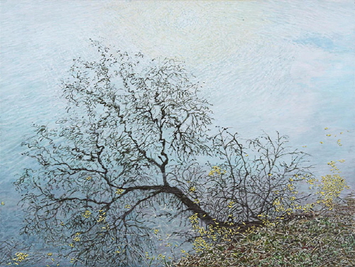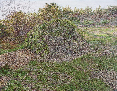 2020년부터의 근작, 신작으로 이루어진 이번 전시는 이러한 작업의 연장선에서 ‘팽창하는 시간성’에 주목한다. 작가가 자연과 호흡하며 감지되는 낯선 질서, 구조를 다시금 배열하면서 상대적으로 다른 시간의 흐름에 단면을 담은 작업이다. 다양한 자연의 모습을 작가는 세밀하게 표현하는 방식으로 시간의 흔적, 분절된 형상, 반복되는 행위들이 화면 안에서 충돌하거나 엉키고, 겹겹이 축적되면서 새로운 질서의 상을 만든다. 이는 과거, 현재, 미래가 뒤썪인 순환의 총체성을 담은 풍경으로 작가는 시간의 기록을 통해 사유의 공간으로서 전환을 시도한다.