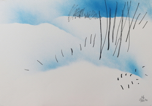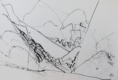 이번 전시가 작가의 <숲>시리즈로 세 번째이다. 지난 두 번의 전시가 ‘강하고 유연하며 어눌한 선들이 뒤엉키면서 혼돈스러운 상황을 보여주는 터질듯 한 생태계의 풍경이자 생명체들이 지르는 소리가 선으로 가시화되는 듯한 그림들 (박영택, 2024)’처럼 직설적이고 감각적이라면, 이번 것들은 다소 관조적이고, 서정적이다. 설악산의 거친 암벽들을 바라보면서 큰 바위 얼굴을 떠 올리기도 하며, 정적의 눈밭을 소요하기도 한다. 숲과 작가는 적당한 거리를 두고 교감한다. 과연 자연으로서의 숲은 여러 모습으로 닥아 와 우리의 곁에 머문다. 생존의 사냥터로, 또는 소외된 자의 은신처로. 산은 언제나 우리의 절실한 물음에 새로운 답을 준비한다.
