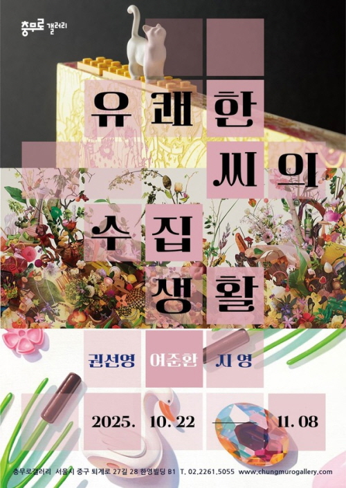 이번 충무로갤러리에서 준비한 ‘유쾌한씨의 수집생활’은 물건이 주는 소소한 심리적 욕구에서 출발한다. 무심히 손에 쥔 사소한 물건 하나가 때로는 삶의 위로가 되고, 누군가와의 관계를 이어주는 매개가 되기도 한다. 세 명의 작가는 이러한 ‘수집’의 행위를 단순한 취향의 아닌, 자신과 타인, 기억과 현실을 잇는 감정적 도구로 바라본다. 전시는 물건을 통해 형성되는 관계와 기억, 그리고 그 속에서 발견되는 인간적인 유쾌함을 보여준다.
