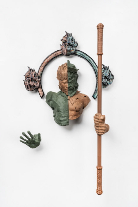 정성진 作_매개자 2024_PLA, 레진, 에폭시 퍼티, 철, 자석, 폴리스티렌, 디지털 프린트_140x70x30cm(ed.1_10).