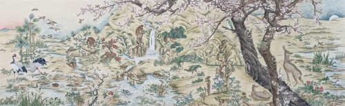 화조영모도_227.4x70.8cm_염색지에 분채-봉채
