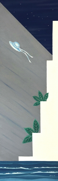 최문아_오후3시의 기록-멈춤_120x40cm_한지 채색_2025