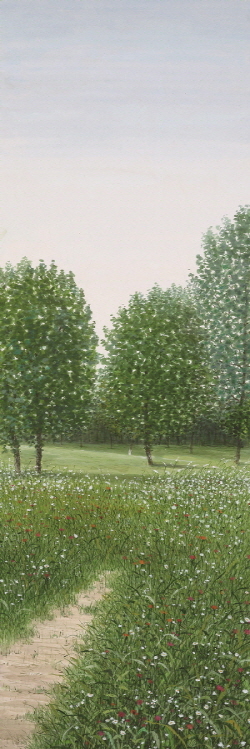 이은경_Garden of Bellagio_120x40cm_한지, 분채, 석채_2025