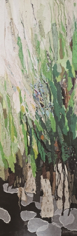 박숙현_쉼(Stillness)_120x40cm_한지, 안료, 돌가루, 석채_2025