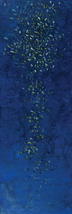 구여혜_빛과 어두움-낮과 밤의 경계에서_120x40cm_장지, 석채, 분채_2025