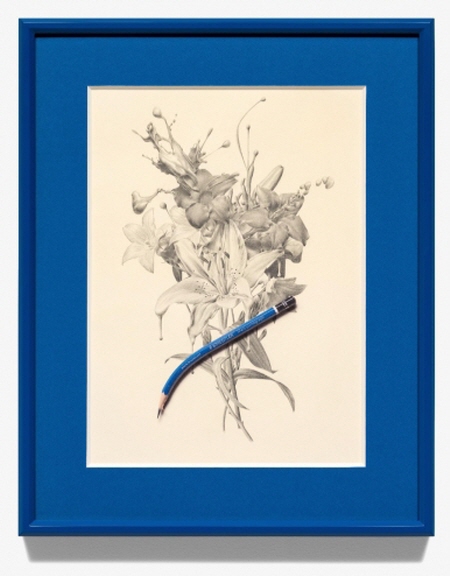 김성윤 作_Study of Flowers, 2025_ UV cured print and graphite on yellow-brown prepared paper_36.3x26.7cm