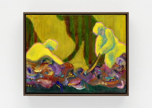 이번 전시에서 선보이는 작업들은 이전보다 한층 내밀하고 사유적이다. 일상에서 마주한 사람들의 자세나 문학 속 이미지, 사회적 관계 속에서 포착한 감정의 순간들이 캔버스 위에 펼쳐진다. 작은 화면 안에 한순간의 기억과 감각을 압축하며, 보는 이로 하여금 그 장면 안의 공기를 느끼게 한다. 인물의 얼굴이 보이지 않아도 그 존재의 온도와 리듬을 떠올리며, 작가의 회화는 거대한 서사 대신 우리가 놓치고 지나가는 미묘한 찰나, 낯설지만 친숙한 일상을 담아낸다.