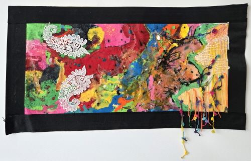델리스 프랭크 作_In Between_Korean pigment, acrylic, fiber, ink, paint and glue skins, fiber on paper_36x67cm_2025