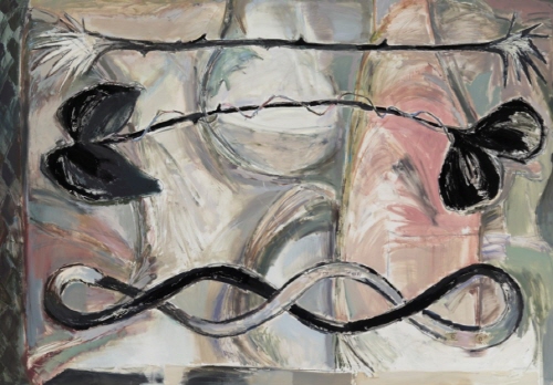 결국 끝맺음이 결여된 모양으로, 2025, 캔버스에 유채와 콘테, 181.8x259.1cm