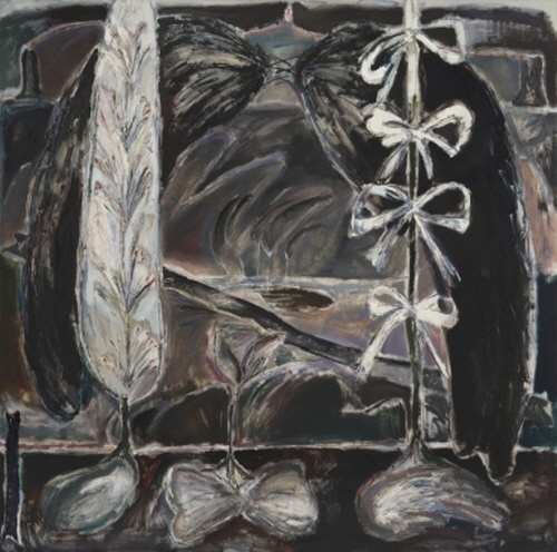 이번 전시 《투명한 고리》는 크게 두 개의 사유 축을 중심으로 구성된다. 첫째, 존재와 부재의 연속성에 대한 탐구다. 장례식장의 초와 생일 케이크 초, 근조 리본과 선물 상자 리본처럼, 서로 상반된 의미를 지닌 사물들이 유사한 형태를 띤다는 사실에서 작가는 중요한 통찰을 얻는다. 동일한 형태가 전혀 다른 감정의 층위를 품을 수 있다는 점, 그 미묘한 전환이 바로 존재와 부재가 교차하는 지점이다. 작가는 이러한 상징적 전환의 순간을 포착해 삶과 죽음, 시작과 끝이 분리된 상태가 아니라, 서로를 반사하며 이어지는 순환적 시간임을 드러낸다. 이는 작가가 세상을 바라보는 태도이자 상실과 애도를 사유하는 하나의 윤리적 방법론이다. 그의 회화는 부재를 기록하는 동시에, 사라진 것을 다시 연결하는 위로의 제의로 기능한다.