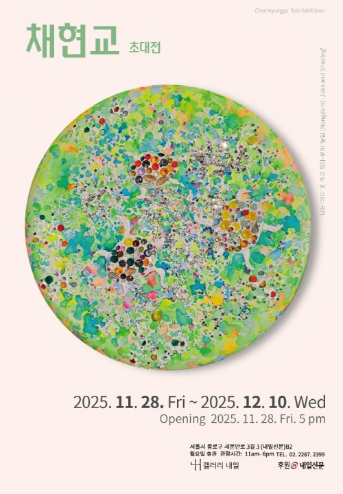 수성 재료로 물속의 풍경을 그리며 “나는 '어디'로 가고 있다” 는 주제로 30여 년간 작업해온 작가 채현교 (90 서양)가 어느날 갑자기 건강상의 이유로 이틀간 생과 사의 경계를 오가는 경험을 겪으며, '어디'라는 목표와 성취에 쫓기던 삶을 잠시 내려놓고 ‘그냥 삶’을 살아보는 시간을 통해 몸과 마음의 회복을 하며 그 시기에 읽은 '농담'에 관한 책들 중 밀란 쿤데라의 소설 '농담' 은 작가에게 깊은 인상을 남겼다. 작품 속에서 주인공이 여자에게 멋있게 보이려고 쓴 엽서 속 문구 “낙관주의는 인류의 아편이다! 건전한 정신은 어리석음의 악취를 풍긴다. 트로츠키 만세!”이 글이 본의 아니게 인간의 인생을 뒤흔드는 장면은, 언어가 지닌 무게와 오해의 충격적이고도 엉뚱한 결과를 보고 언어적 농담(弄談)과 회화적 농담(濃淡) 사이의 흥미로운 닮음을 찾아냈다. 두 ‘농담’ 모두 깊이나 무게, 원근, 감정, 내용 등의 결과물들이 작가의 의도와 같게 또는 다르게 담아낸다는 점에서 서로 닮아 있던 것이었다. 이번 전시에서 작가는 수성재료와 크리스탈을 사용한 농담과 빛을 이용해 채도와 명도를 중심으로 시각적으로는 재미있으면서도 편안함을 주면서, 그 안에 숨겨진 농담코드와 진지한 의미를 찾아보게 하는 작업들을 선보인다. 화려한 색채와 반짝이는 보석만으로도 그의 ‘농담’은 결코 가볍지 않다. 언어와 색채, 삶과 예술 사이의 경계를 넘나드는 사유의 흔적이 물속의 풍경에서 잔잔히 또는 요동치며 번져가는 작품을 격동하고있는 광화문의 신문로에서 발견하길 바란다.