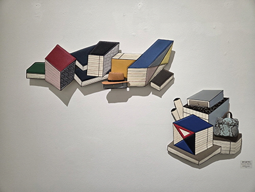 오주연 作_공부가 싫은 책가도_70x30cm, 35x35cm_가죽