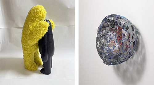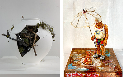 신예진 作_달항아리_Diameter 32cm_Mixed Media (좌) 천예슬 作_Everything is okay_25x25x33(h)cm_Mixed media (우)