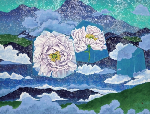 박미란 作_마당에 핀 행복1_장지, 분채, 석채_91x117.5cm_2024