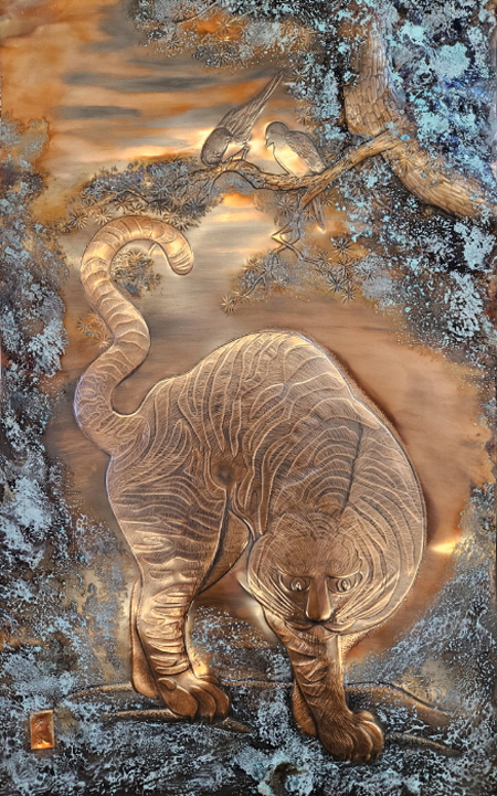 호작도, 2025_동판에 부조 및 부식_97.8x60.0cm